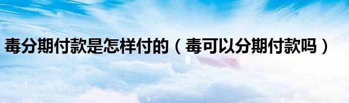 大家好,跳跳为你解答以上问题。毒分期付款是怎样付的,毒可以分期付款吗这个问题很多人还不知道,现在让我们一起来看看吧!