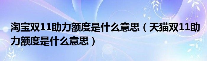 大家好,跳跳为你解答以上问题。淘宝双11助力额度是什么意思,天猫双11助力额度是什么意思这个问题很多人还不知道,现在让我们一起来看看吧!
