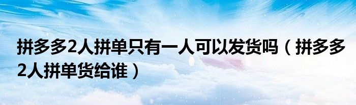 大家好,跳跳为你解答以上问题。拼多多2人拼单只有一人可以发货吗,拼多多2人拼单货给谁这个问题很多人还不知道,现在让我们一起来看看吧!