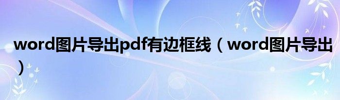 大家好,小晋来为大家解答以下问题,关于word图片导出pdf有边框线,word图片导出很多人还不知道,今天让我们一起来看看吧!