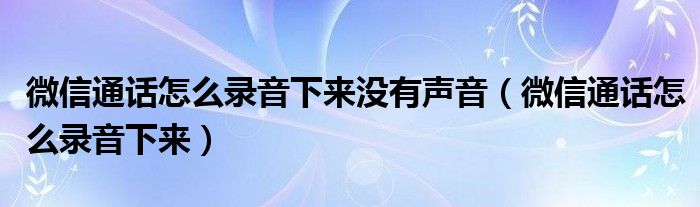 微信通话怎么录音下来没有声音(微信通话怎么录音下来)