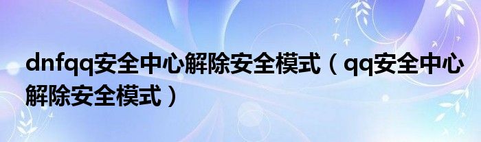 dnfqq安全中心解除安全模式(qq安全中心解除安全模式)