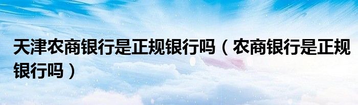 天津农商银行是正规银行吗(农商银行是正规银行吗)