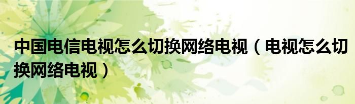 大家好,小晋来为大家解答以下问题,关于中国电信电视怎么切换网络电视,电视怎么切换网络电视很多人还不知道,今天让我们一起来看看吧!