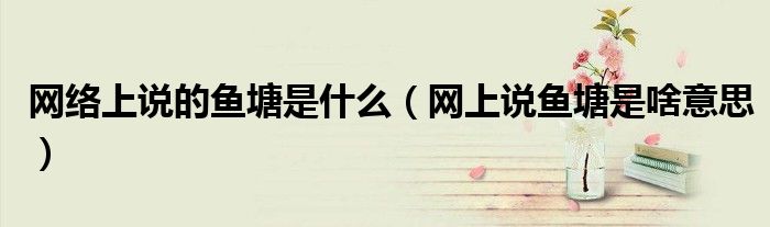 大家好,小晋来为大家解答以下问题,关于网络上说的鱼塘是什么,网上说鱼塘是啥意思很多人还不知道,今天让我们一起来看看吧!
