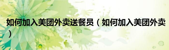 如何加入美团外卖送餐员(如何加入美团外卖)