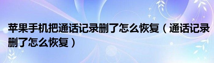 苹果手机把通话记录删了怎么恢复(通话记录删了怎么恢复)