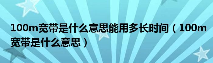 大家好,小晋来为大家解答以下问题,关于100m宽带是什么意思能用多长时间,100m宽带是什么意思很多人还不知道,今天让我们一起来看看吧!
