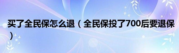 大家好,小晋来为大家解答以下问题,关于买了全民保怎么退,全民保投了700后要退保很多人还不知道,今天让我们一起来看看吧!