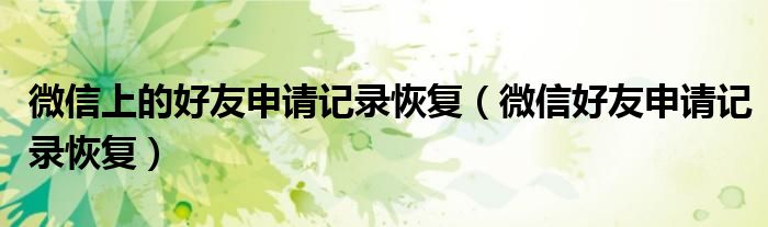 大家好,小晋来为大家解答以下问题,关于微信上的好友申请记录恢复,微信好友申请记录恢复很多人还不知道,今天让我们一起来看看吧!