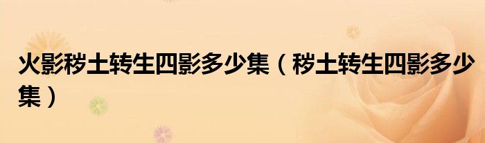 火影秽土转生四影多少集(秽土转生四影多少集)