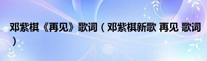 关于邓紫棋《再见》歌词,邓紫棋新歌 再见 歌词这个很多人还不知道,今天菲菲来为大家解答以上的问题,现在让我们一起来看看吧!