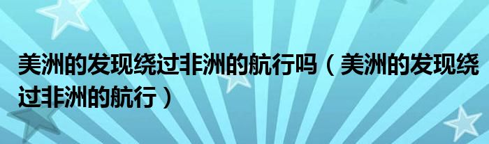 关于美洲的发现绕过非洲的航行吗,美洲的发现绕过非洲的航行这个很多人还不知道,今天菲菲来为大家解答以上的问题,现在让我们一起来看看吧!