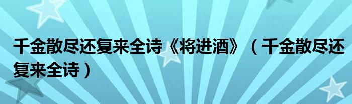 2、“千金散尽还复来”出自唐代诗人李白《将进酒》中的一句,全句为“天生我材必有用,千金散尽还复来”。