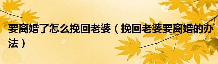 要离婚了怎么挽回老婆(挽回老婆要离婚的办法)