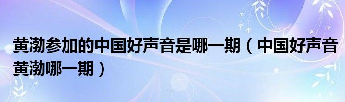大家好,小晋来为大家解答以下问题,关于黄渤参加的中国好声音是哪一期,中国好声音黄渤哪一期很多人还不知道,今天让我们一起来看看吧!
