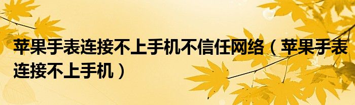 苹果手表连接不上手机不信任网络(苹果手表连接不上手机)