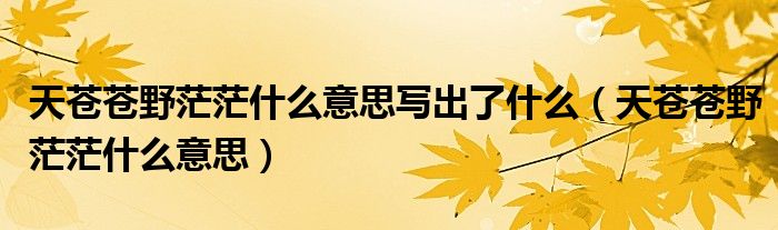 大家好,小晋来为大家解答以下问题,关于天苍苍野茫茫什么意思写出了什么,天苍苍野茫茫什么意思很多人还不知道,今天让我们一起来看看吧!