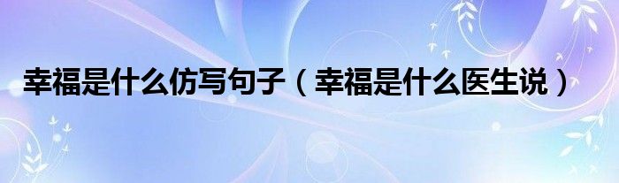 关于幸福是什么仿写句子,幸福是什么医生说这个很多人还不知道,今天菲菲来为大家解答以上的问题,现在让我们一起来看看吧!