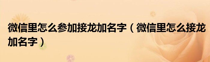 大家好,小晋来为大家解答以下问题,关于微信里怎么参加接龙加名字,微信里怎么接龙加名字很多人还不知道,今天让我们一起来看看吧!