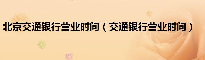 关于北京交通银行营业时间,交通银行营业时间这个很多人还不知道,今天菲菲来为大家解答以上的问题,现在让我们一起来看看吧!