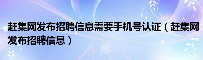 关于赶集网发布招聘信息需要手机号认证,赶集网发布招聘信息这个很多人还不知道,今天菲菲来为大家解答以上的问题,现在让我们一起来看看吧!