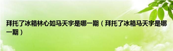 拜托了冰箱林心如马天宇是哪一期(拜托了冰箱马天宇是哪一期)