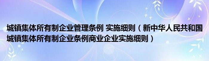 关于城镇集体所有制企业管理条例 实施细则,新中华人民共和国城镇集体所有制企业条例商业企业实施细则这个很多人还不知道,今天菲菲来为大家解答以上的问题,现在让我们一起来看看吧!