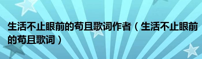 关于生活不止眼前的苟且歌词作者,生活不止眼前的苟且歌词这个很多人还不知道,今天菲菲来为大家解答以上的问题,现在让我们一起来看看吧!