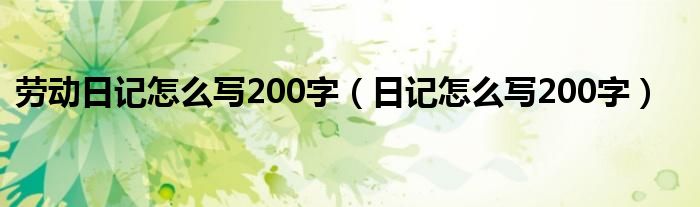 关于劳动日记怎么写200字,日记怎么写200字这个很多人还不知道,今天菲菲来为大家解答以上的问题,现在让我们一起来看看吧!