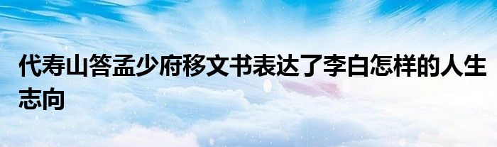 关于代寿山答孟少府移文书表达了李白怎样的人生志向这个很多人还不知道,今天菲菲来为大家解答以上的问题,现在让我们一起来看看吧!
