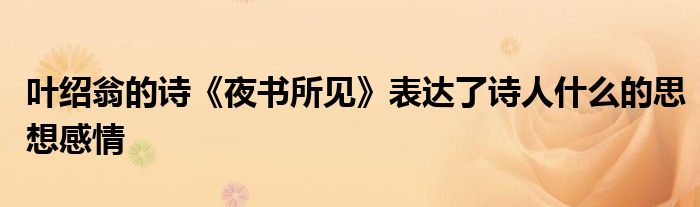 关于叶绍翁的诗《夜书所见》表达了诗人什么的思想感情这个很多人还不知道,今天菲菲来为大家解答以上的问题,现在让我们一起来看看吧!