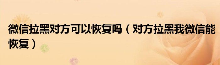 关于微信拉黑对方可以恢复吗,对方拉黑我微信能恢复这个很多人还不知道,今天菲菲来为大家解答以上的问题,现在让我们一起来看看吧!