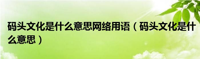 大家好,小晋来为大家解答以下问题,关于码头文化是什么意思网络用语,码头文化是什么意思很多人还不知道,今天让我们一起来看看吧!