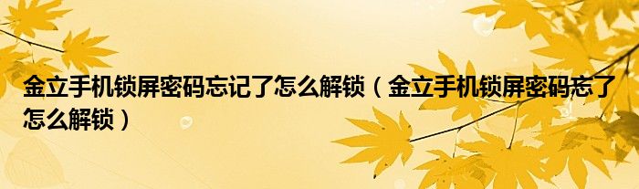 关于金立手机锁屏密码忘记了怎么解锁,金立手机锁屏密码忘了怎么解锁这个很多人还不知道,今天菲菲来为大家解答以上的问题,现在让我们一起来看看吧!