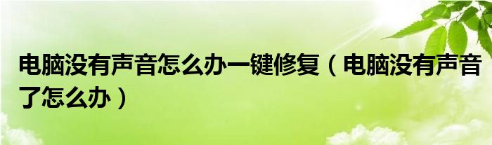大家好,来宝来为大家解答以下问题,电脑没有声音怎么办一键修复,电脑没有声音了怎么办很多人还不知道,今天让我们一起来看看吧!