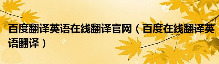 关于百度翻译英语在线翻译官网,百度在线翻译英语翻译这个很多人还不知道,今天菲菲来为大家解答以上的问题,现在让我们一起来看看吧!