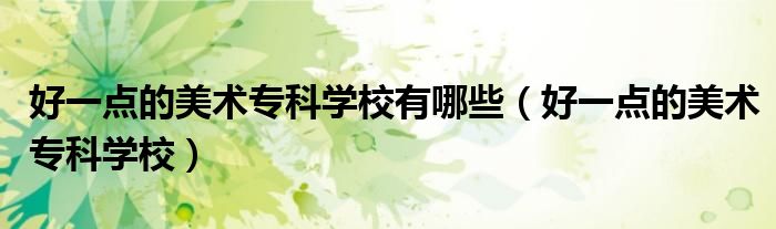 大家好,小晋来为大家解答以下问题,关于好一点的美术专科学校有哪些,好一点的美术专科学校很多人还不知道,今天让我们一起来看看吧!