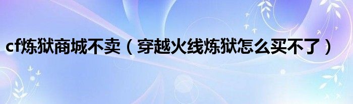 大家好,小晋来为大家解答以下问题,关于cf炼狱商城不卖,穿越火线炼狱怎么买不了很多人还不知道,今天让我们一起来看看吧!