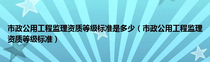 关于市政公用工程监理资质等级标准是多少,市政公用工程监理资质等级标准这个很多人还不知道,今天菲菲来为大家解答以上的问题,现在让我们一起来看看吧!