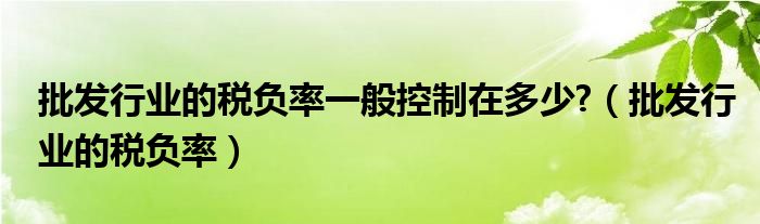 关于批发行业的税负率一般控制在多少?,批发行业的税负率这个很多人还不知道,今天菲菲来为大家解答以上的问题,现在让我们一起来看看吧!