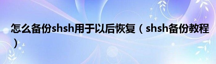 大家好,来宝来为大家解答以下问题,怎么备份shsh用于以后恢复,shsh备份教程很多人还不知道,今天让我们一起来看看吧!