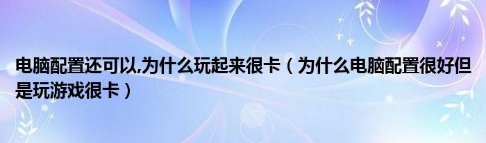 关于电脑配置还可以,为什么玩起来很卡,为什么电脑配置很好但是玩游戏很卡这个很多人还不知道,今天菲菲来为大家解答以上的问题,现在让我们一起来看看吧!