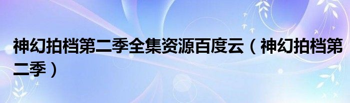 大家好,小晋来为大家解答以下问题,关于神幻拍档第二季全集资源百度云,神幻拍档第二季很多人还不知道,今天让我们一起来看看吧!
