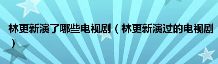 关于林更新演了哪些电视剧,林更新演过的电视剧这个很多人还不知道,今天菲菲来为大家解答以上的问题,现在让我们一起来看看吧!