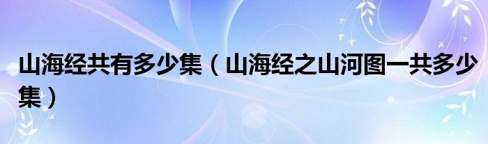 关于山海经共有多少集,山海经之山河图一共多少集这个很多人还不知道,今天菲菲来为大家解答以上的问题,现在让我们一起来看看吧!