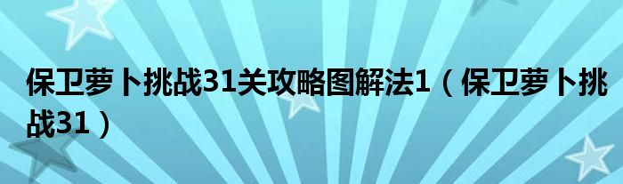大家好,来宝来为大家解答以下问题,保卫萝卜挑战31关攻略图解法1,保卫萝卜挑战31很多人还不知道,今天让我们一起来看看吧!