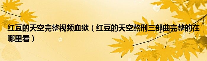 关于红豆的天空完整视频血狱,红豆的天空熬刑三部曲完整的在哪里看这个很多人还不知道,今天菲菲来为大家解答以上的问题,现在让我们一起来看看吧!