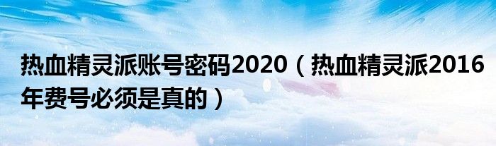 关于热血精灵派账号密码2020,热血精灵派2016年费号必须是真的这个很多人还不知道,今天菲菲来为大家解答以上的问题,现在让我们一起来看看吧!