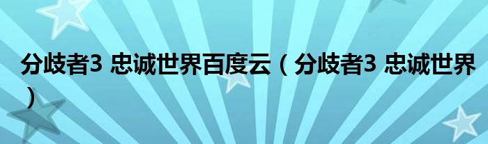 分歧者3 忠诚世界百度云(分歧者3 忠诚世界)